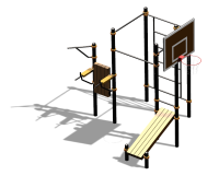 В состав комплекса входит баскетбольный щит с кольцом, стойка для боксерской груши, приставные брусья, стойка для пресса, шведская стенка, турники. Оборудование для занятий воркаутом можно установить как на уличной спортплощадке во дворе, так и на даче, в школе, на территории спортивных секций. Заказать со сборкой изделие вы сможете уже сейчас. О способах доставки можно почитать в соответствующем разделе сайта. Спорткомплекс позволяет не только качать мышцы пресса, спины, плеч, рук, ног, но также отрабатывать мастерство в боксе, баскетболе. Производитель воркаут оборудования поставляет изделия высочайшего качества, изготовленные в соответствии с ГОСТом.