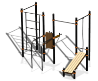 Спорткомплекс содержит разноуровневые турники, шведскую стенку, стойку для пресса, мышц ног, приставные брусья, турник с канатом. Оборудование для воркаут тренировок оснащено регулируемыми хомутами. Снаряды предназначены для тренировки рук, ног, пресса, плеч, спины, улучшения показателей выносливости, силы. Изготовитель воркаут оборудования предоставляет инвентарь, который можно монтировать на отрытых спортплощадках. Специальное покрытие обеспечивает устойчивость изделий к воздействиям коррозии, атмосферным влияниям. Все снаряды сертифицированы, соответствуют ГОСТу. Заказать с установкой спортивный комплекс можно в любой город, подобрав необходимый метод доставки товаров.